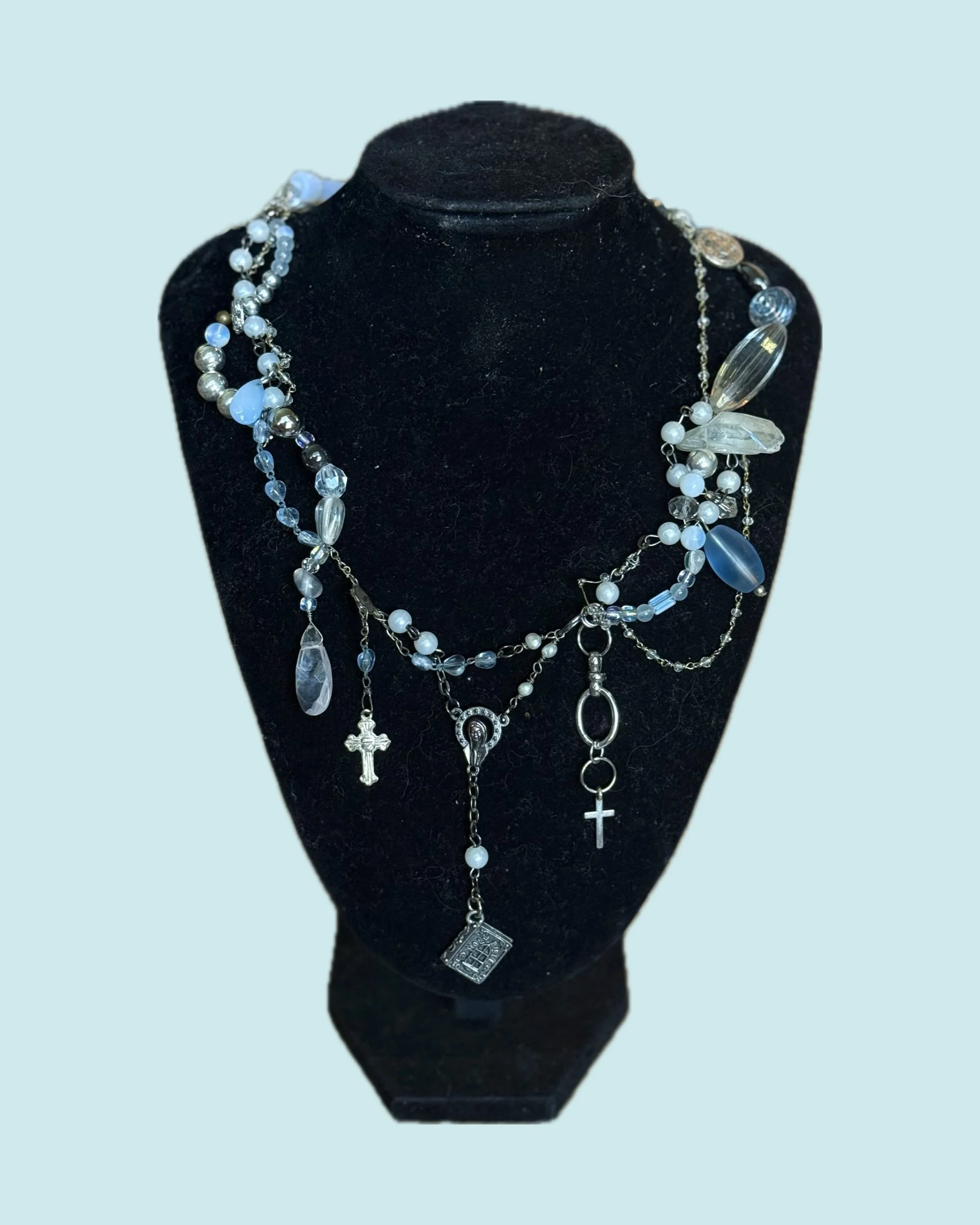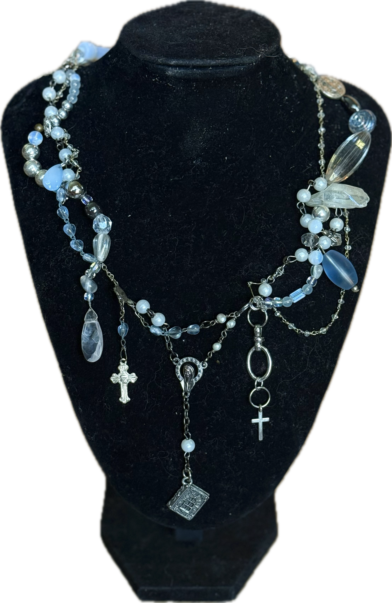 Image 1 of 2 Image 2 of 2 The Windsor Neckalce $70.00 Stunning iridescent & religious iconography necklace With crystals, found objects and moreNickel free, adjustable and osfm Add To Cart Added! Stunning iridescent & religious iconography necklace With crystals, found objects and moreNickel free, adjustable and osfm