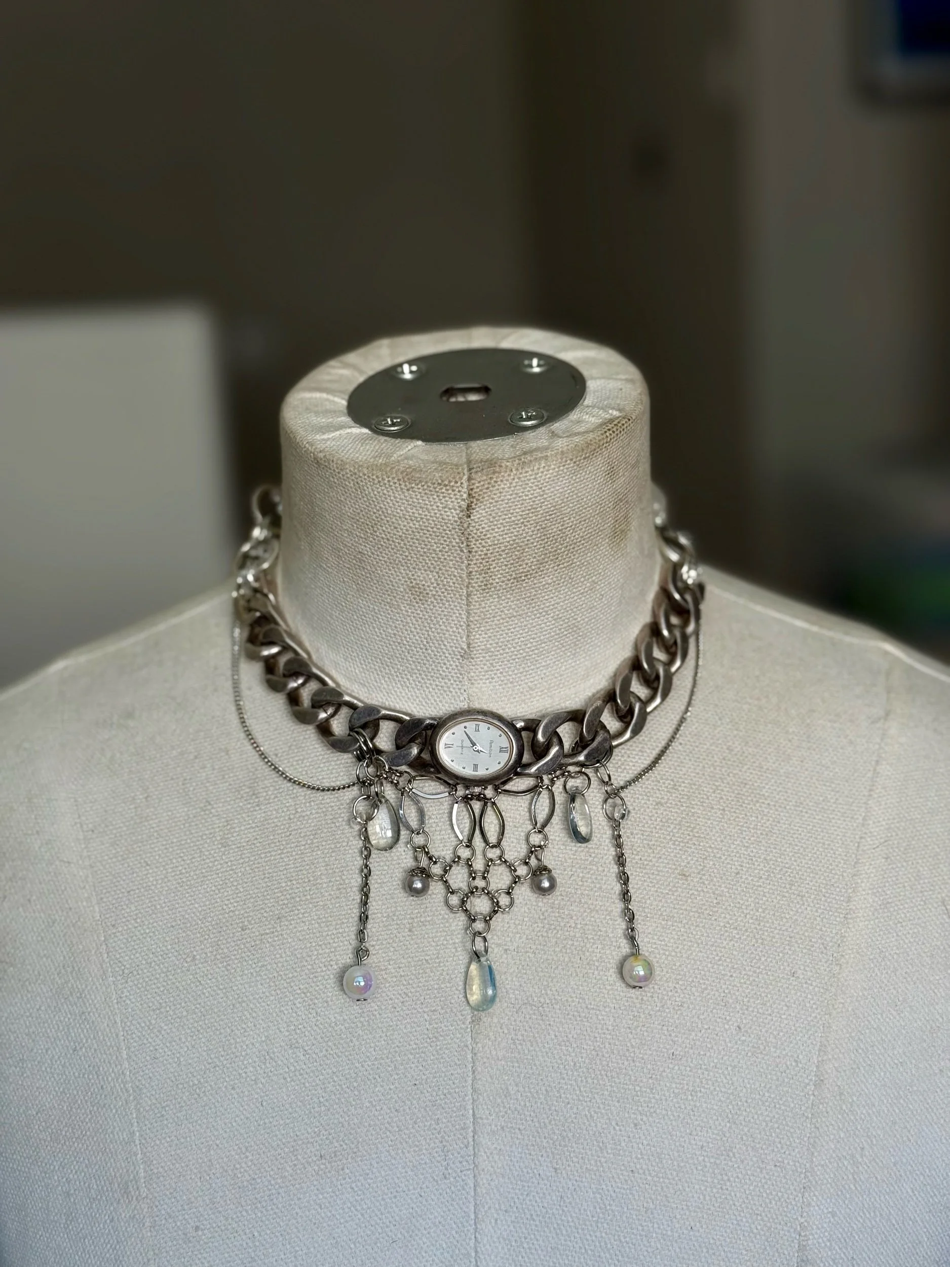 Upcycled vintage y2k (non working-needs a battery replacement) choker adorned with opiate crystals & chain