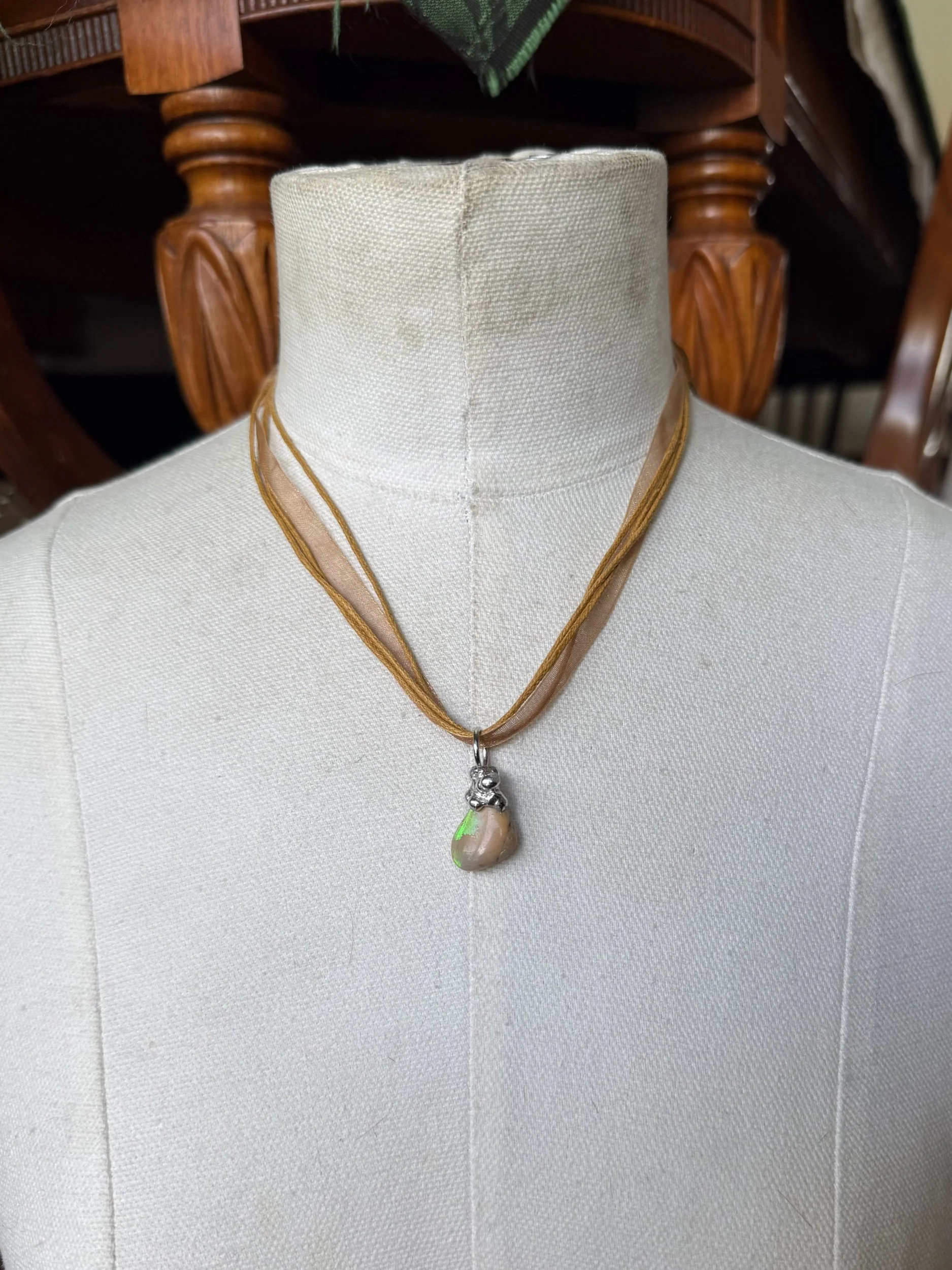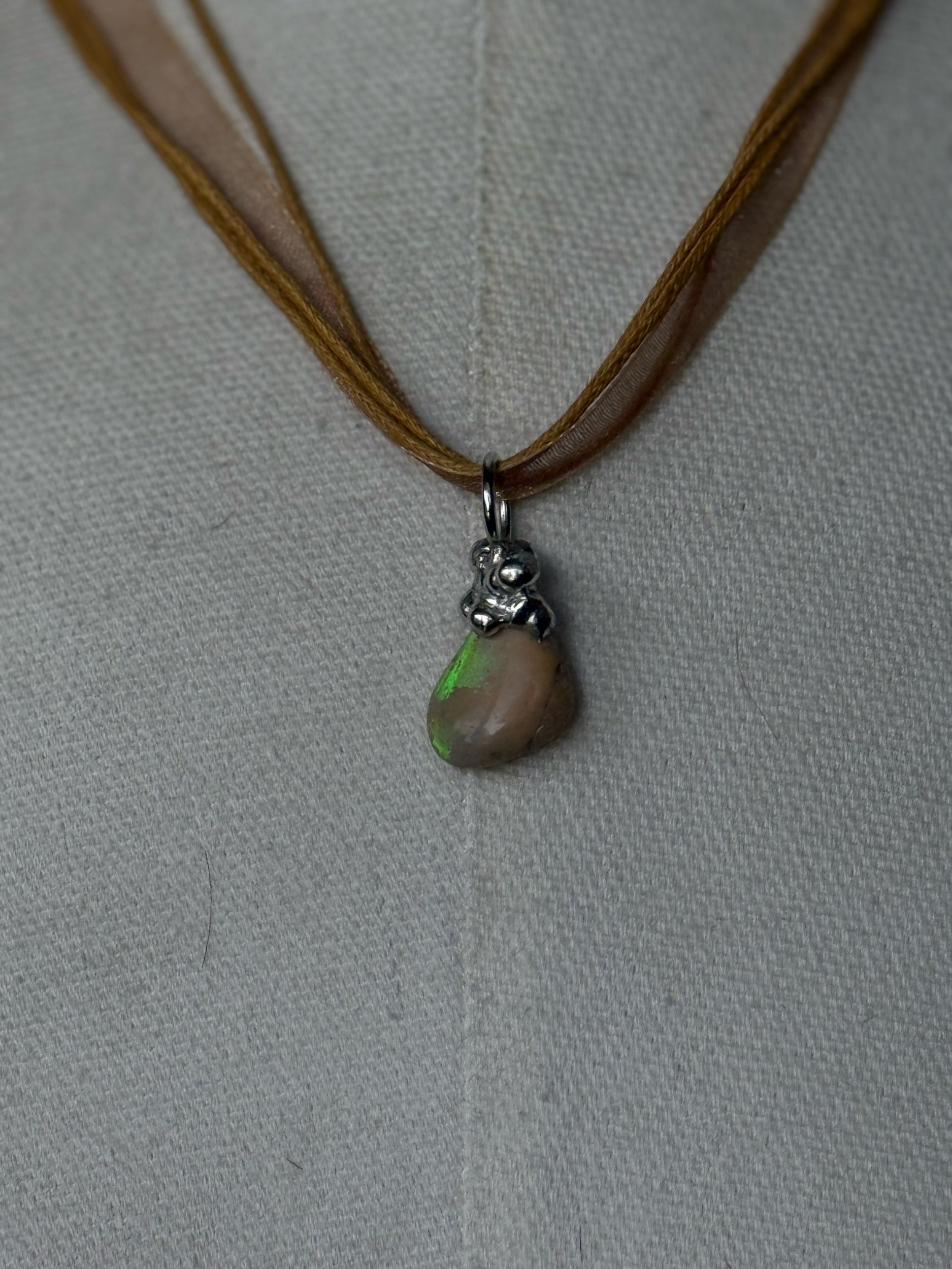 Image 1 of 2 Image 2 of 2 The Anjelik Neclace $65.00 Fairy core genuine Australian opal soldered rock on a brown corded necklace. Nickel free, adjustable and OSFM Add To Cart Added! Fairy core genuine Australian opal soldered rock on a brown corded necklace. Nickel free, adjustable and OSFM