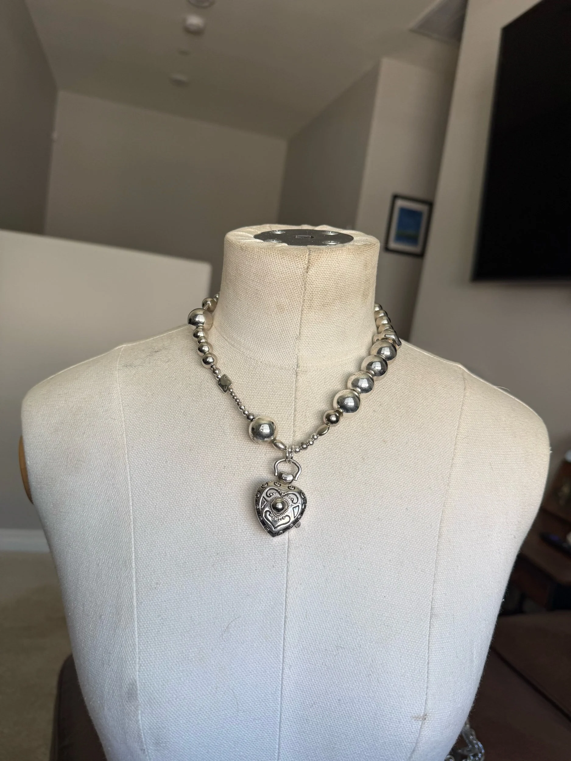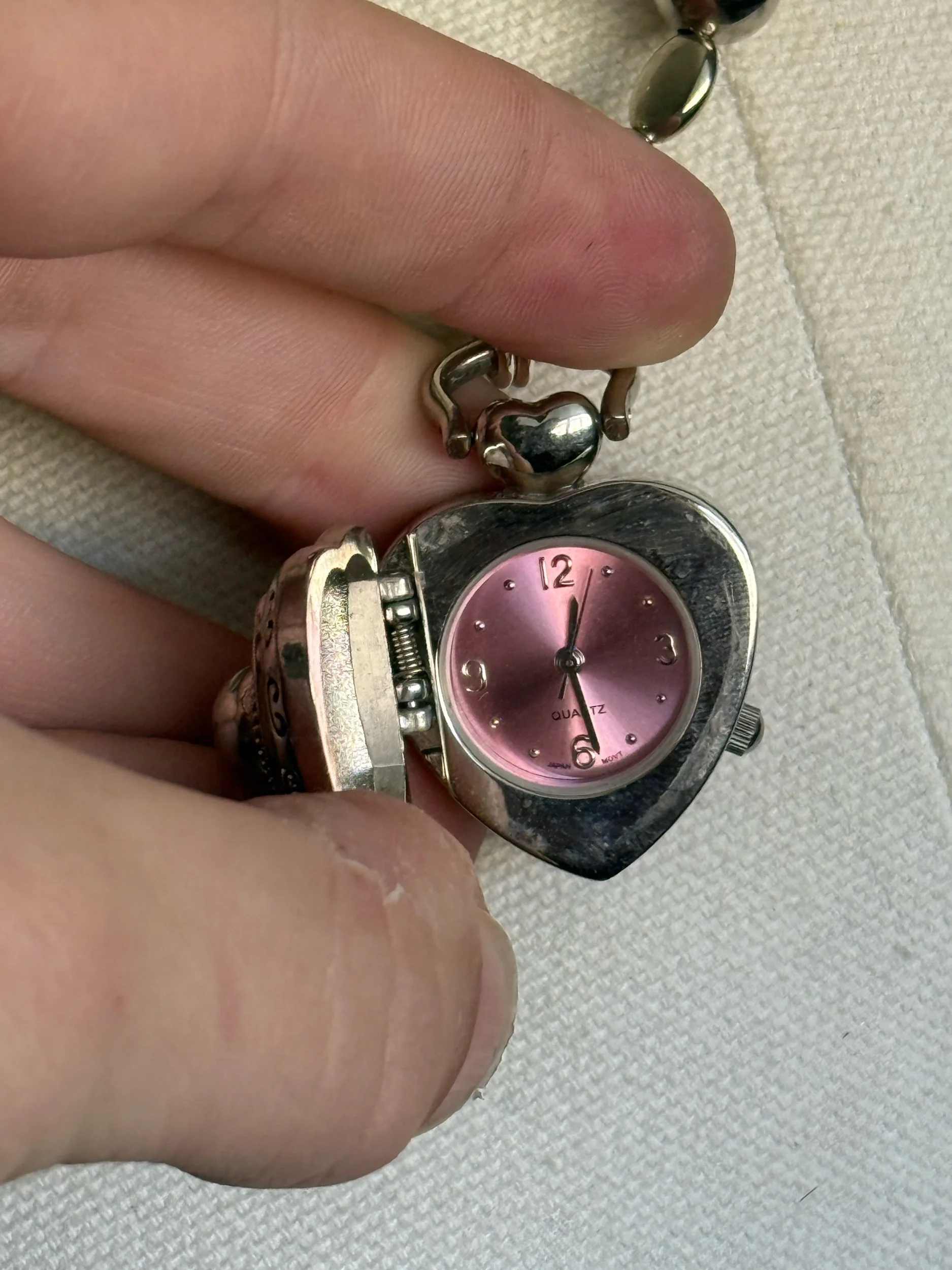 Non-working (needs battery replacement) vintage watch necklace with upcycled silver tone beads