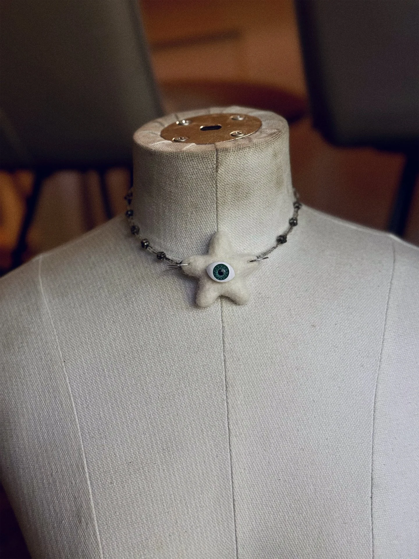 Felt star with an eye ποΈ adorned on a vintage y2k flower bead silver choker